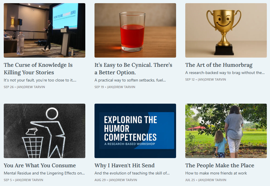 I’m Andrew Tarvin, an engineer turned humorist on a mission to help one billion people master their skill of humor.