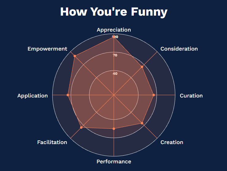 Which means it’s not a question of whether you’re “funny” or “not funny.” You have a specific profile across 8 skills, and every one of them can be developed.